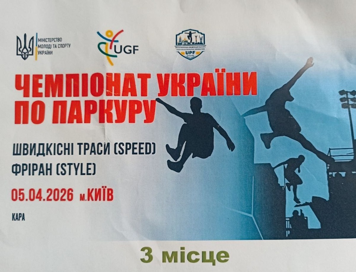 - Бронзовий чемпіон України з паркуру 13.04.2026 23:16