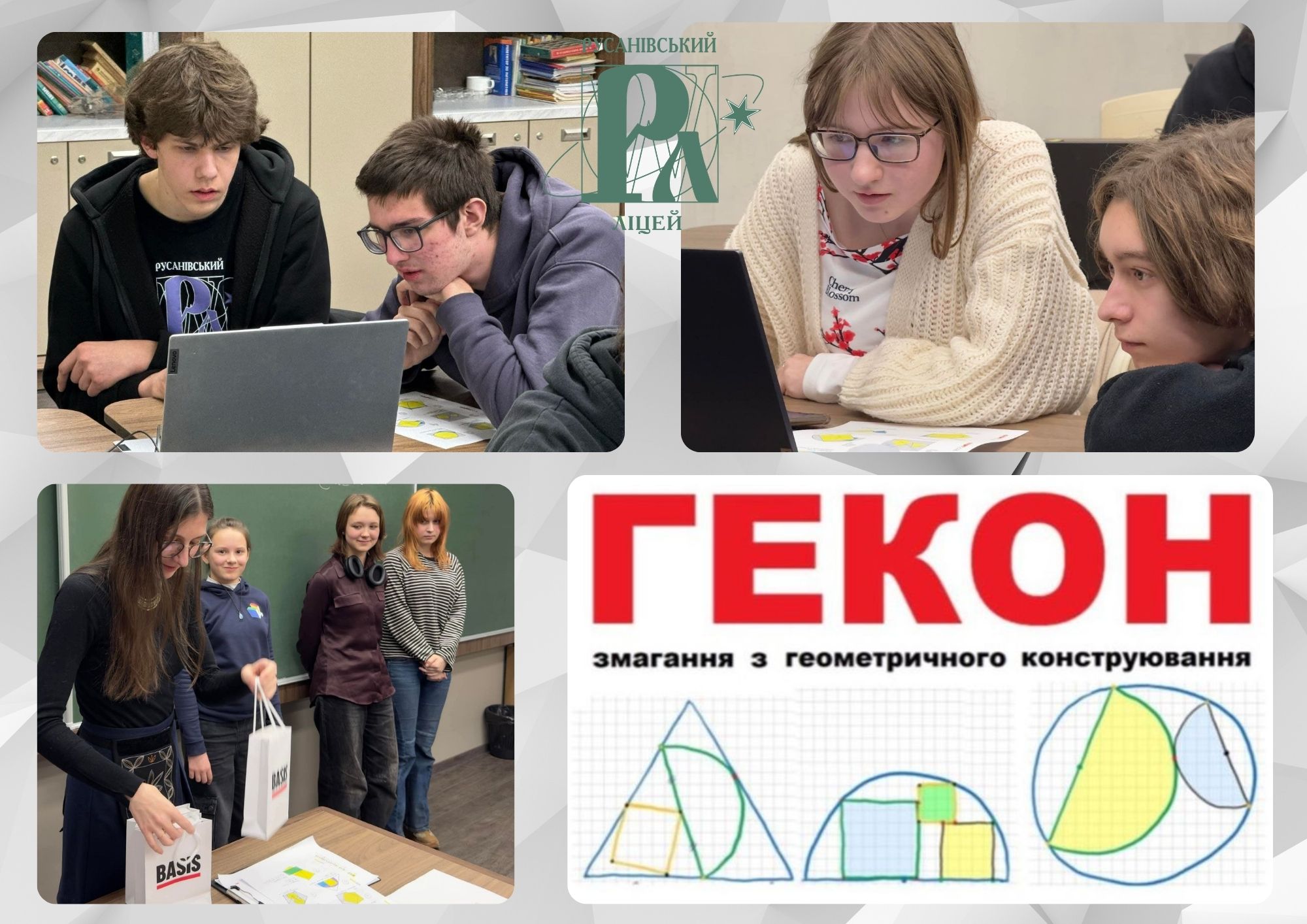 Справжній інтелектуальний драйв, нестандартні ідеї чекали нас, учасників олімпіади з геометричного конструювання в GeoGebra «ГеКон», яку вкотре організовують для тих, хто любить зануритись у геометричні шедеври викладачі освітнього центру «Базис», співзасновником якої є випускник Русанівського ліцею, Юрій Білецький.